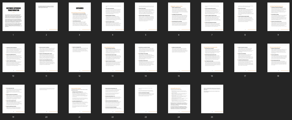 Offer your customers a powerful prompt pack that gives them the tools to reimagine customer experience. Whether they are starting fresh or looking to refine existing systems, this resource provides practical, actionable prompts to help them deliver consistency, build trust, and create lasting customer relationships.
